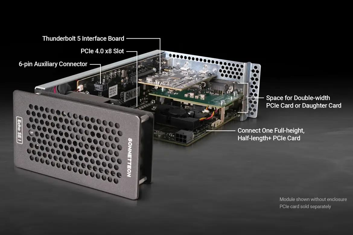 Laptop and mini computers with Thunderbolt 5 ports offer tremendous processing power, but don’t have the PCIe slots creative pros need for connecting adapter cards to add specialized ports and processing capabilities critical to their workflows. Sonnet offers the ideal solution to overcome this limitation with the Echo™ SE I T5 Thunderbolt™ 5 to PCIe card expansion system. This compact, single-slot solution works with the latest Macs, Windows PCs, and Linux computers equipped with Thunderbolt or USB4 ports, letting you connect almost any Thunderbolt-compatible (non-GPU) PCIe card using the included Thunderbolt 5 cable.Thunderbolt 5 Interface