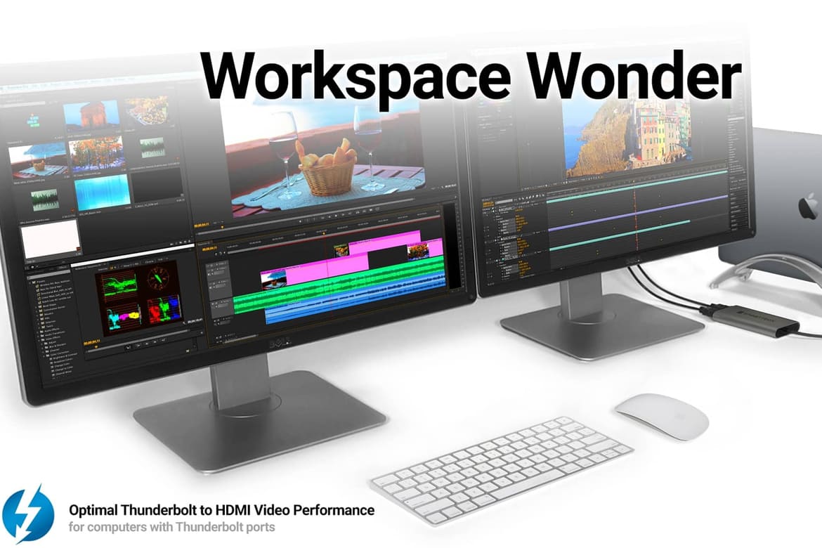 Expanded Workspace. Enhanced Workflow.Work more efficiently and expand your application desktop space across multiple screens. Whether you need to edit video or code like a pro, open multiple applications on their own screens, crunch spreadsheets in detail, or mirror your notebook’s display on a larger monitor, the Sonnet Thunderbolt Dual HDMI Adapter makes it possible. Connecting the adapter is plug-and-play easy – your computer powers the Sonnet adapter, so there’s no need to connect an additional power supply, and with native macOS® and Windows® support there’s no need to install separate driver software.