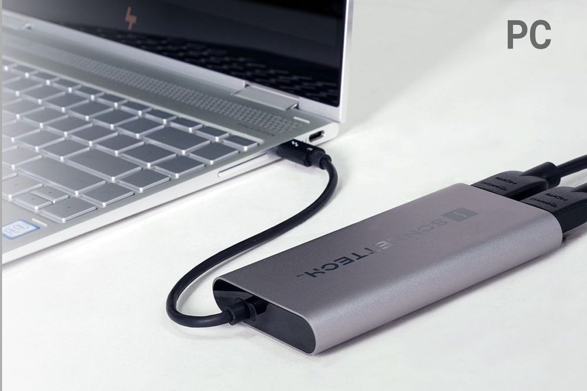 Do your ideas and workflow need room to grow beyond a single screen? Sonnet Thunderbolt Dual 4K HDMI 2.1 Adapter makes it possible for you to work more efficiently with your laptop, compact desktop or all-in-one computer, enabling you to connect two 4K 120Hz (or 8K 60Hz + 4K 60Hz) monitors as supported by your Windows computer, or two 4K 60Hz to Apple® M series Pro, Max, or Ultra Macs.Productivity Partner