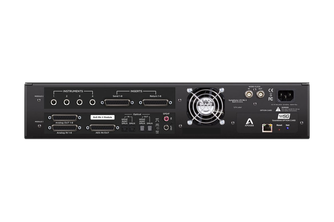 The Apogee Electronics Symphony I/O Mk II SoundGrid Chassis with 8x8 Analog I/O, 8x8 Digital I/O, and 8 Microphone Preamps is a SoundGrid-compatible audio interface designed to deliver flexible inputs and outputs and Ethernet connectivity to computers and SoundGrid devices for recording and mixing engineers in broadcast, post-production, studio, and live stage applications. The included I/O card provide eight channels of analog inputs and outputs via DB25 connectors, eight channels of AES/EBU and optical digital I/O, and stereo S/PDIF. Additionally, the A8MP card grants you eight high-gain microphone preamplifiers, four 1/4" Hi-Z inputs, and eight insert sends and returns.
