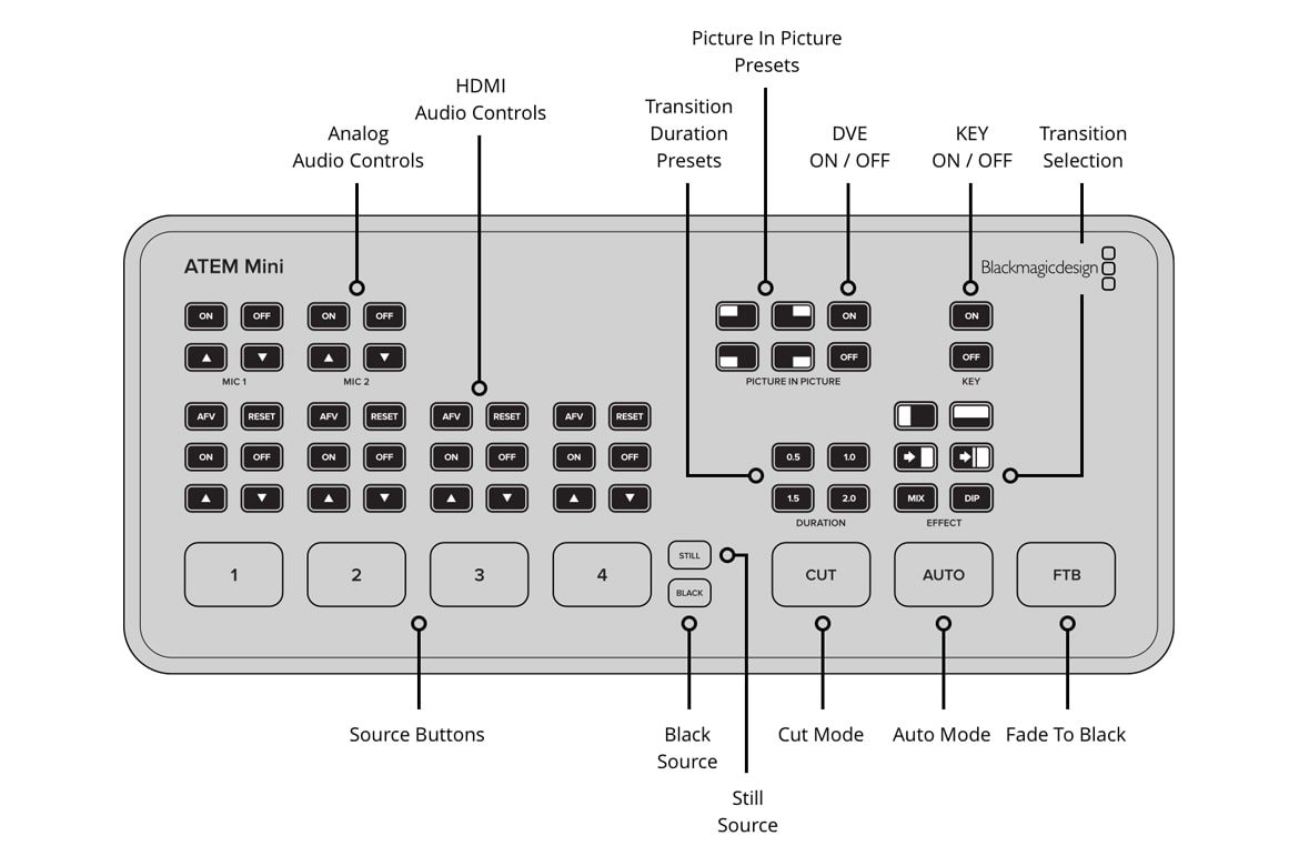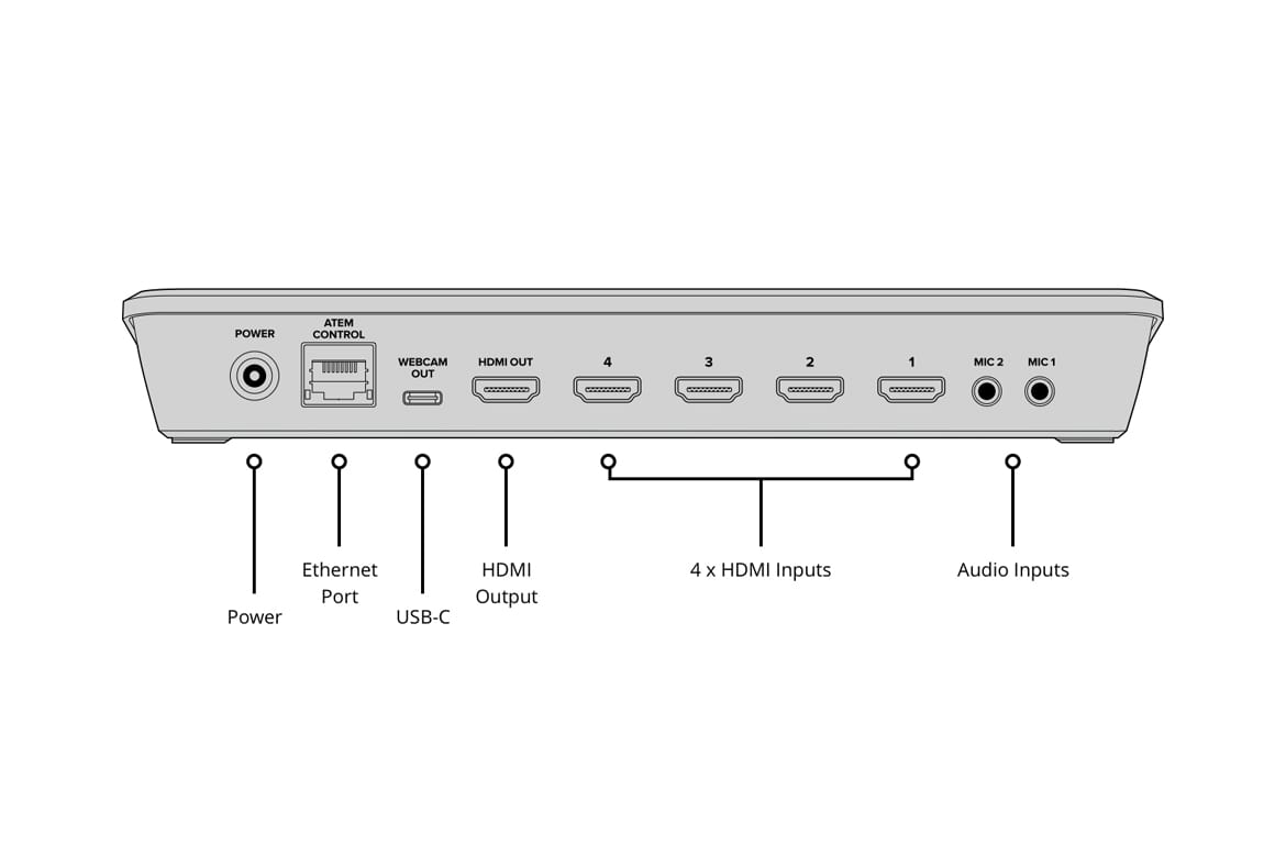 Live production switchers designed for live streaming with 4 HDMI inputs, front panel control, transitions, DVE, keyers, full 1080 HD webcam output and more!Product Highlights
