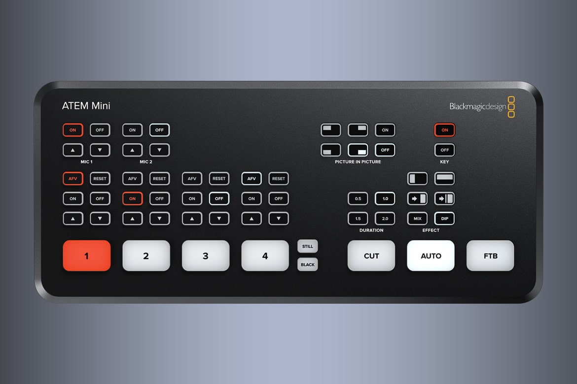 ATEM Mini features 4 HDMI inputs and has an intuitive, easy to use design that makes it possible for anyone to live stream multi camera productions online via services and software such as YouTube Facebook Live or even Skype. Simply connect 4 high quality HDMI inputs that can be used for live switching cameras, computers or even game consoles. You get a built in DVE for exciting picture in picture effects, broadcast quality transitions, upstream keyers for removing blue and green screen background, a downstream keyer for superimposing custom graphics, audio inputs a mixer, and more. To stream, ATEM Mini also has a USB output that works like a webcam, so you can connect to any video software. There's also HDMI video out for projectors.