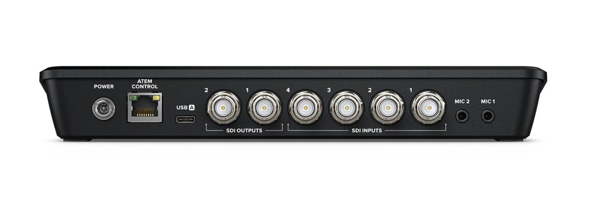 ATEM SDI Pro ISO is fast to set up and easy to use. It includes 4 standards converted SDI inputs, USB webcam, 2 SDI outputs, Fairlight audio mixer with EQ and dynamics, DVE for picture in picture, transition effects, green screen chroma key, 20 stills media pool for titles and free ATEM Software Control.