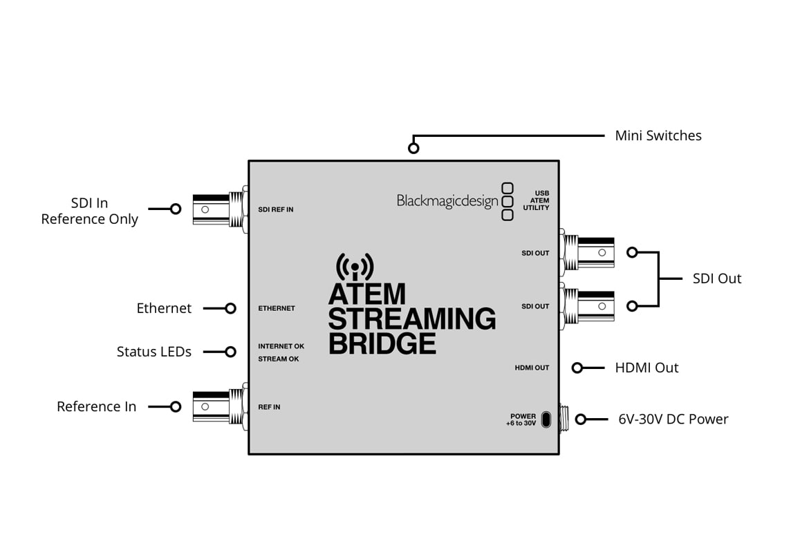 | Streaming Input | ATEM Streaming Bridge supports video input streamed over ethernet from ATEM Mini Pro and ATEM Mini Pro ISO. |