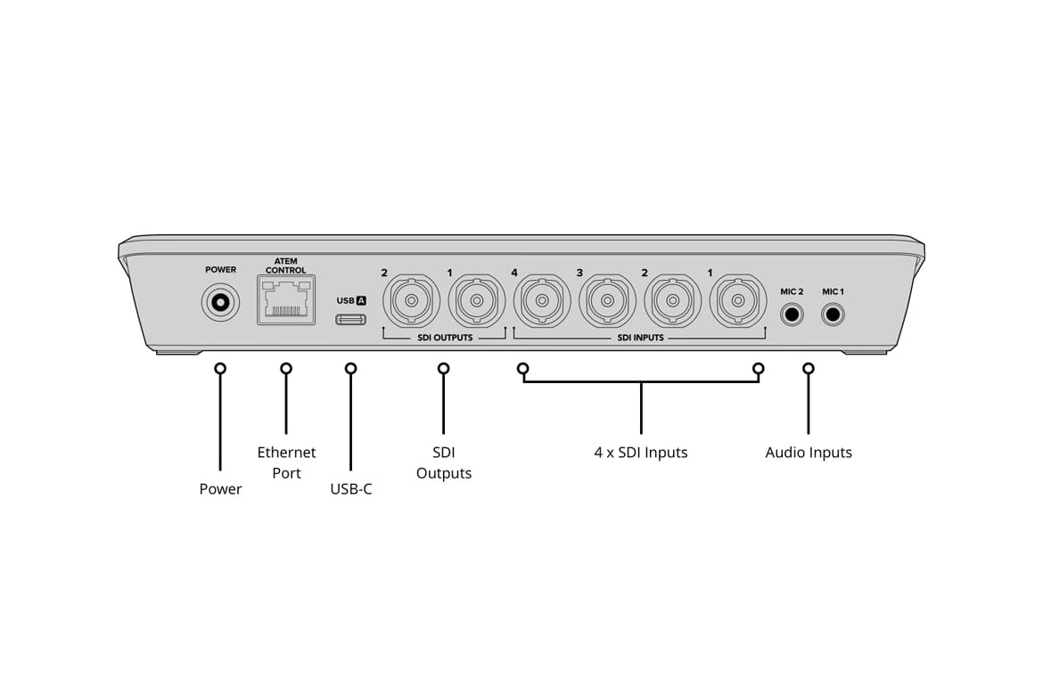 - 2 x 3G-SDI Output, Ethernet ATEM Control