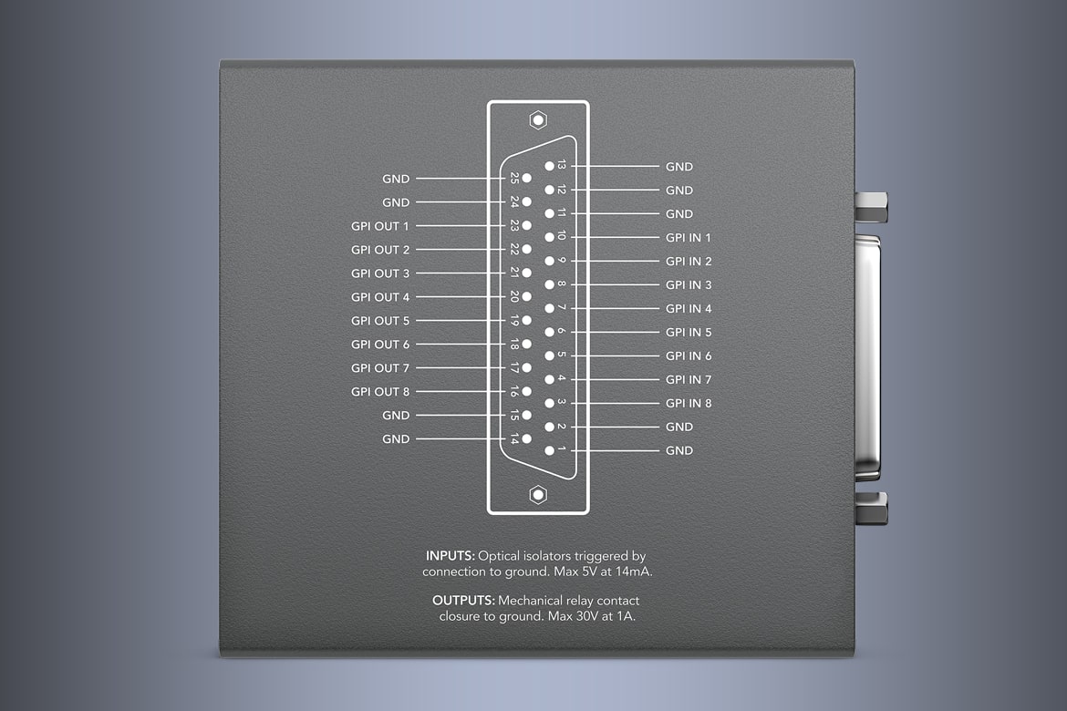 Add tally to your ATEM switcher with Blackmagic Design's GPI and Tally Interface! With 8 contact closure tally outputs, you can send a tally signal to your cameras, replay machines and monitors so everyone knows which camera is 'on-air'! If you need more tally outputs, simply connect multiple GPI and Tally Interfaces together because it connects via Ethernet to your ATEM production switcher.