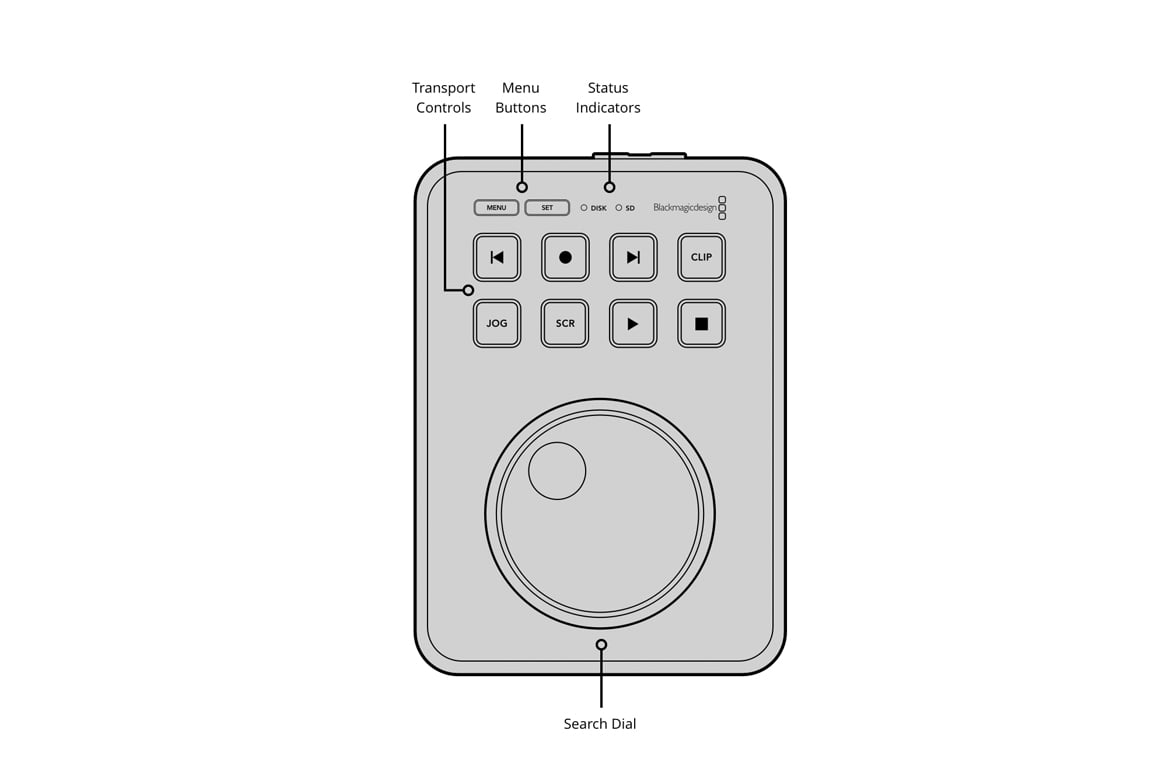 Built in Control Panel | 10 buttons for transport and device control plus metal search dial. |