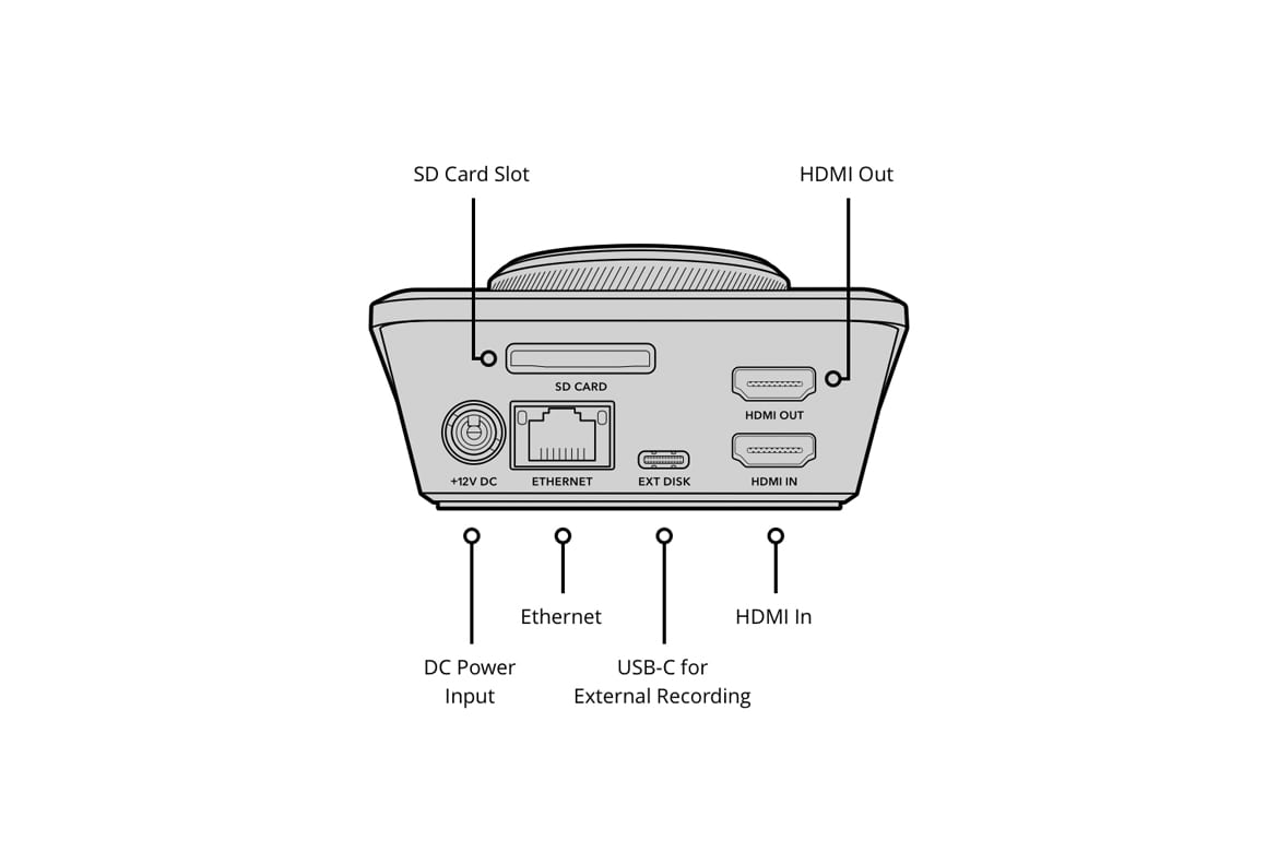 External Control | HDMI start/stop, timecode run. Includes Blackmagic HyperDeck Ethernet Protocol. Supports remote FTP file upload. |