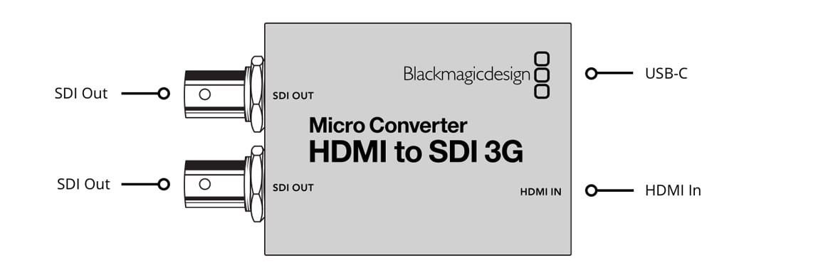 SDI Video Outputs | 2 x SD, HD or 3G‑SDI. Automatically matches the HDMI input. |