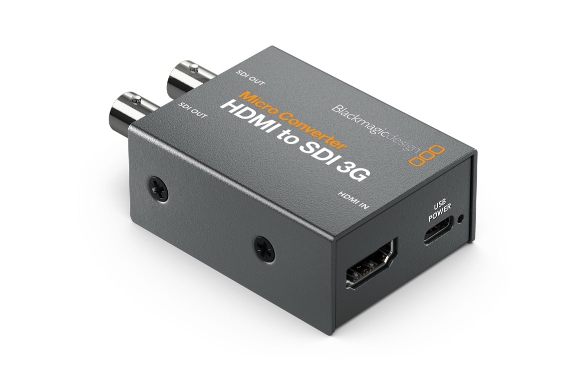 This model is perfect for connecting HDMI cameras and computers to professional SDI equipment! You get two 3G-SDI outputs which can be set to level A or level B formats. Unlike cheap converters, it even supports feature film video formats including 1080p24, 1080p47.95 and 1080p48. Includes 100 to 240V AC power supply with international socket adapters.
