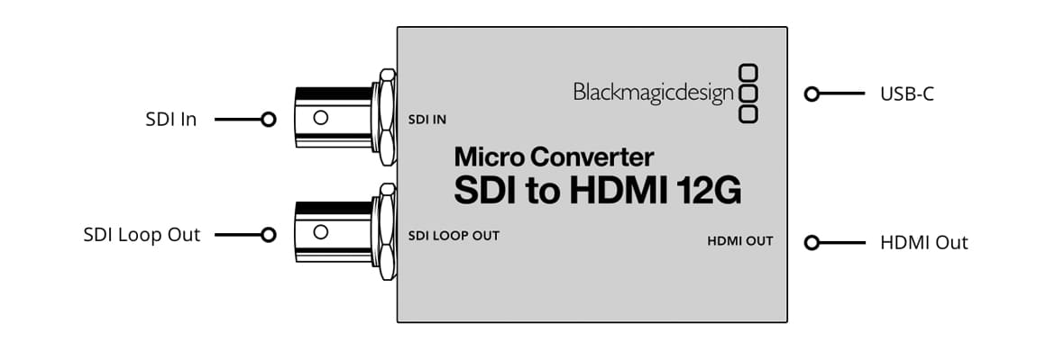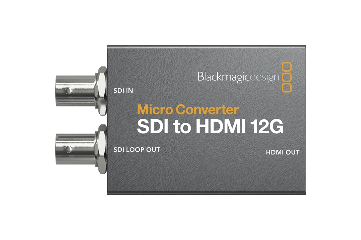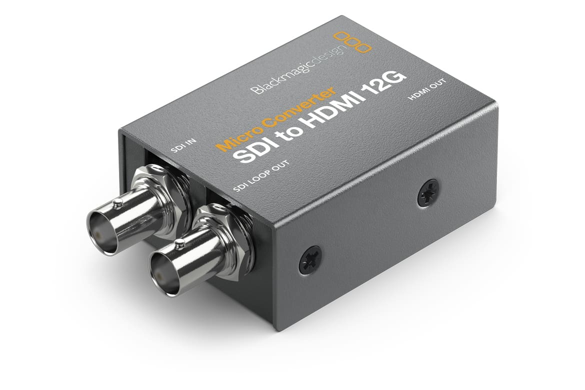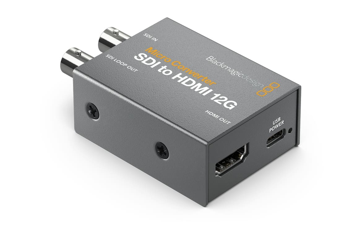 The world’s smallest 12G-SDI to HDMI broadcast quality converter! Blackmagic Micro Converter SDI to HDMI 12G is a miniaturized broadcast quality video converter that’s been specifically designed for professional monitoring. It includes a 33 point 3D LUT for color calibrating any monitor, projector or television. Micro Converters feature full size HDMI and professional 12G-SDI connections for working with all NTSC, PAL, 720p, 1080p, 1080PsF, 1080i and 2160p rates, including 4K DCI at 24/47.95/48. You get a universal power supply with international AC plug adapters, or you can power it over USB from a television or a mobile phone charger.