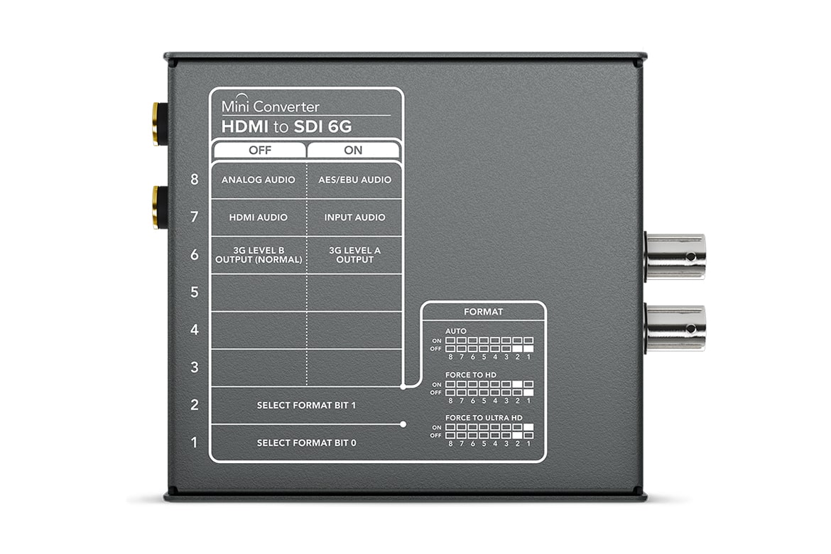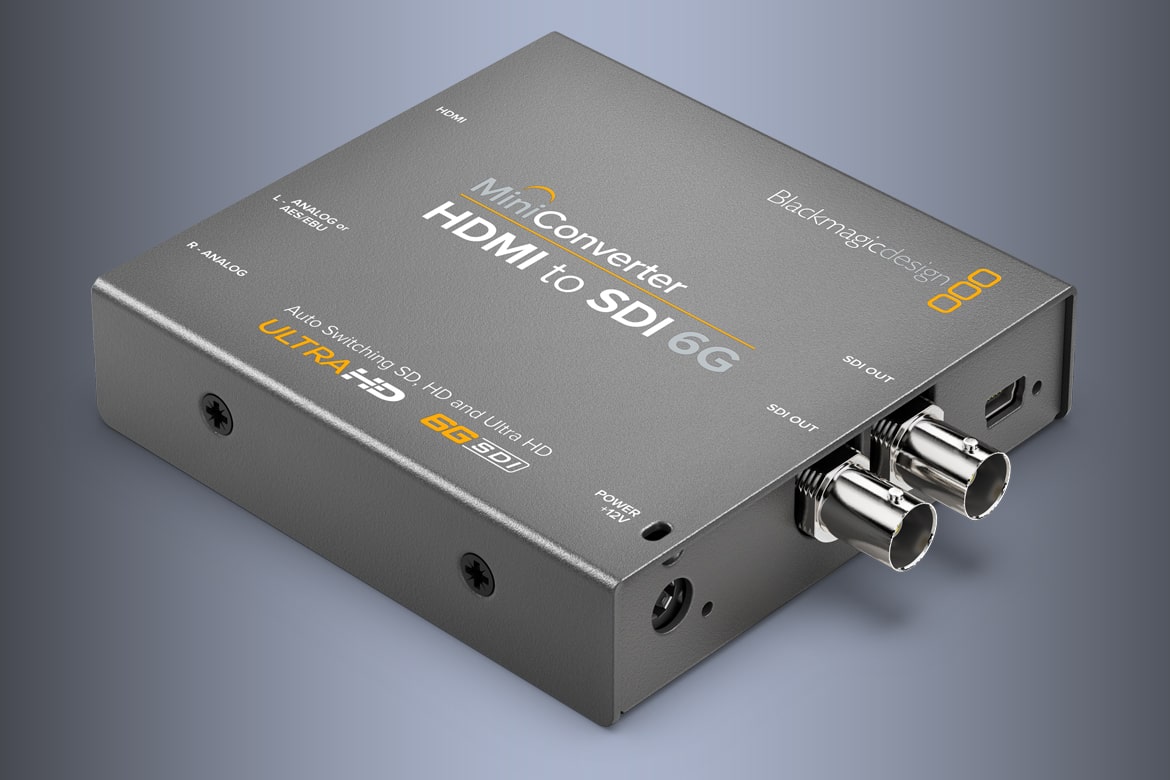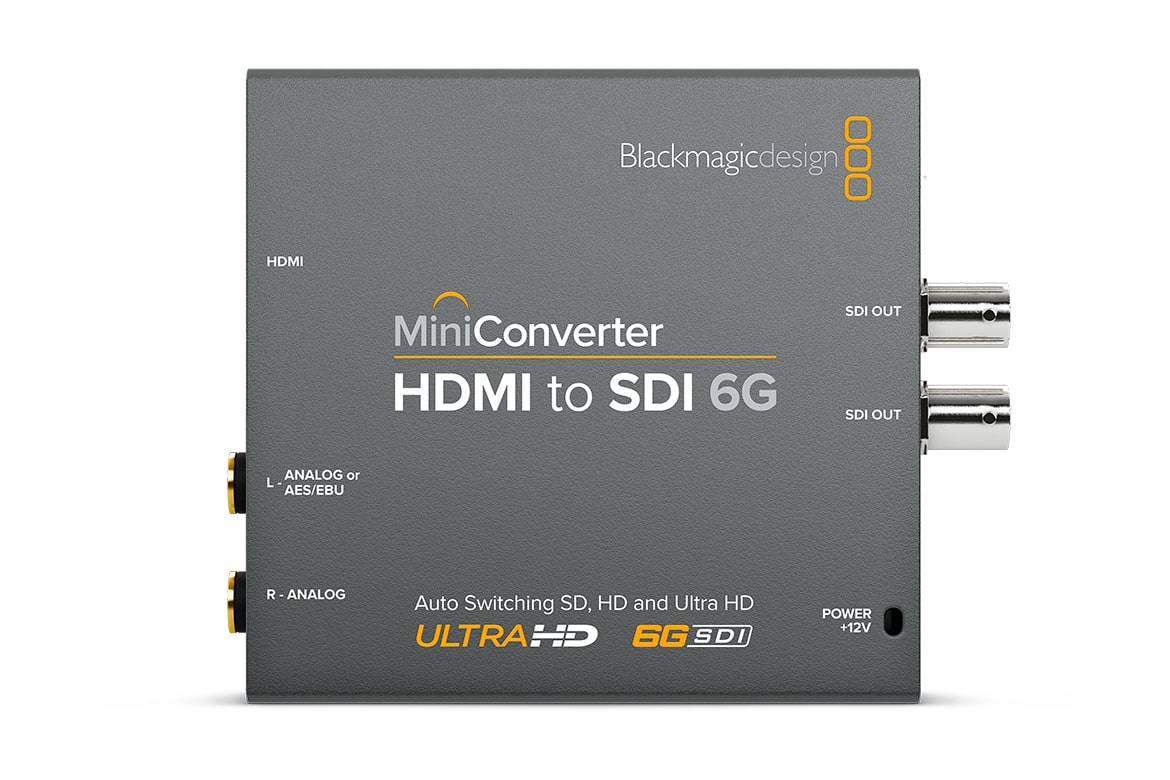 Mini Converter HDMI to SDI 6G includes everything you need to convert from HDMI devices to SDI video in SD, HD and Ultra HD video formats. With independent audio connections you can also embed SDI audio from HDMI, AES/EBU or balanced analog audio inputs. Mini Converter HDMI to SDI 6G is the perfect solution to convert HDMI consumer cameras or computers to broadcast quality SDI!