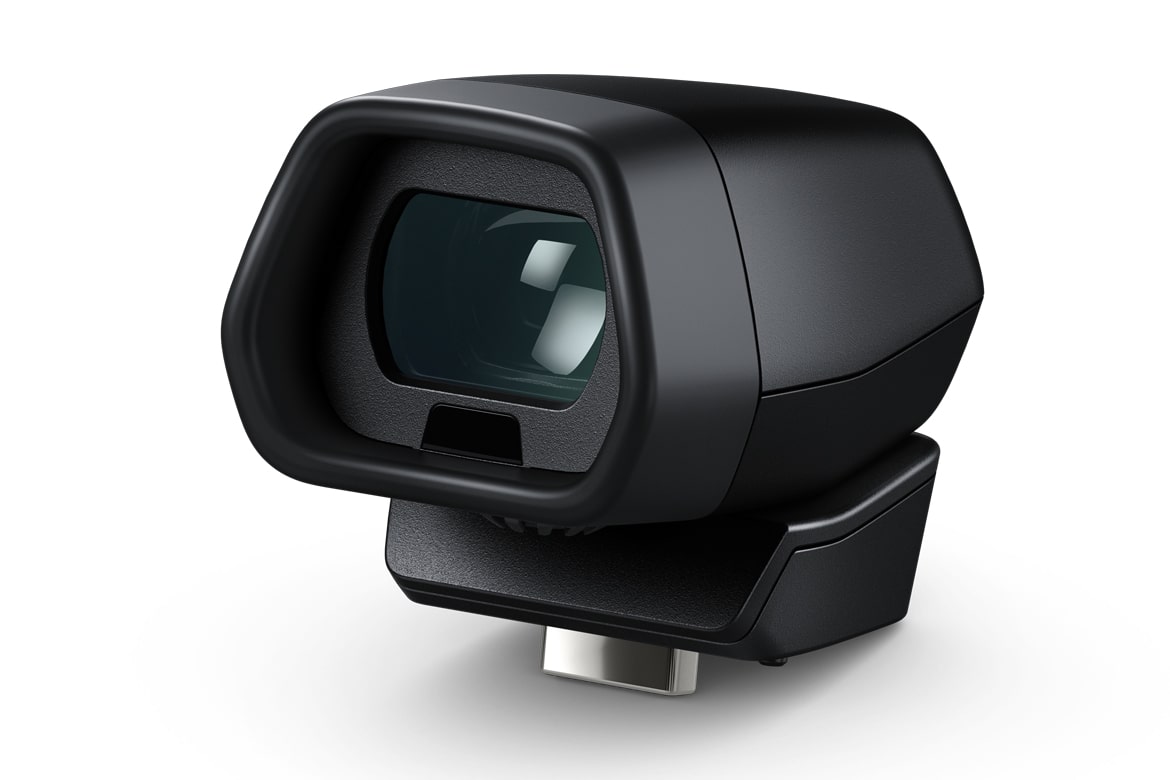 The Blackmagic Pocket Cinema Camera Pro EVF is the perfect accessory to make outdoors and handheld shooting easy! You get a high quality viewfinder with built in proximity sensor, 4 element glass diopter with an incredible -4 to +4 adjustment, built in status information, and a digital focus chart. The Pocket Cinema Camera Pro EVF connects quickly to the Blackmagic Pocket Cinema Camera 6K Pro via a single connector. The viewfinder has up to 70 degree swivel, and comes with a set of 4 eyecups including left and right eye.