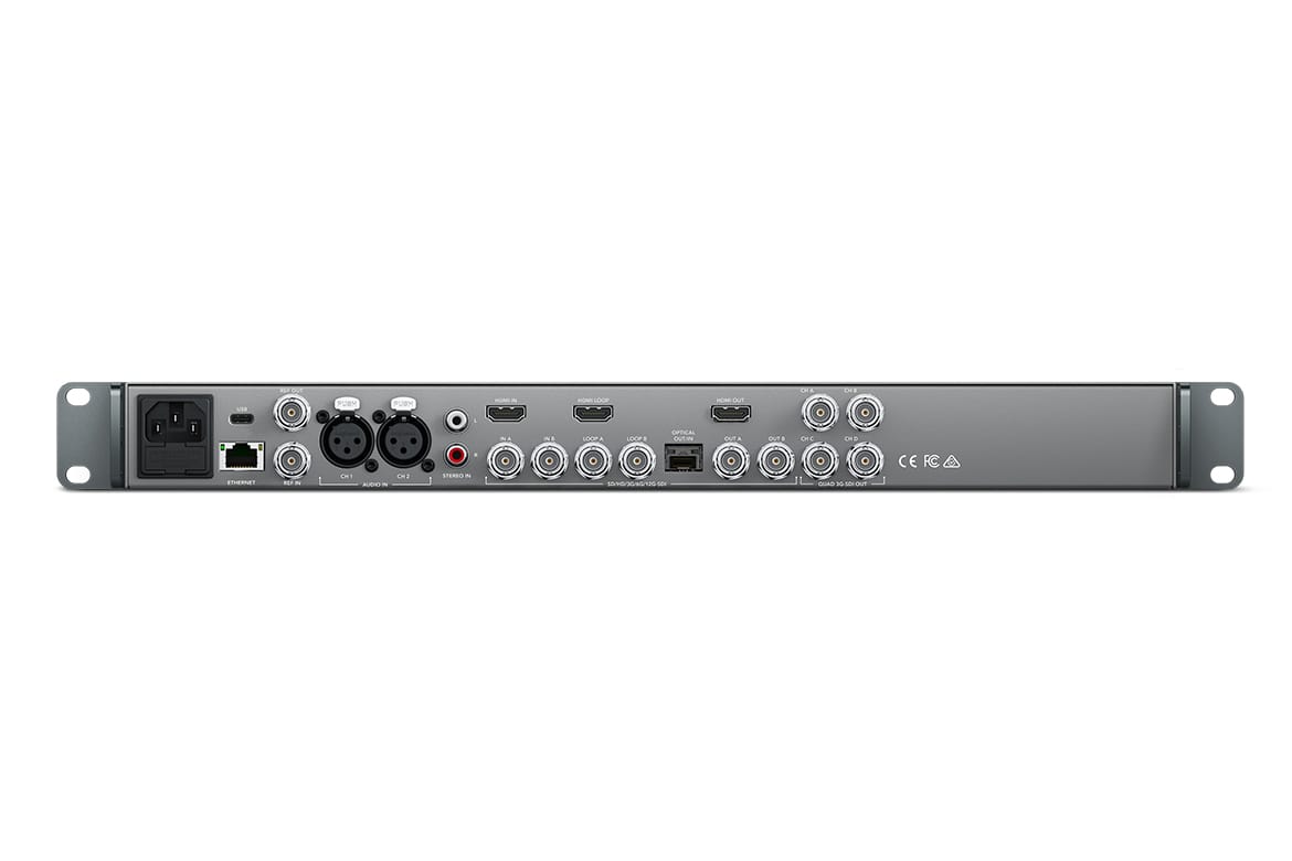 Teranex AV is specifically designed with new features for live events and professional AV installations, as well as broadcast and post production workflows. You get 1,089 up, down, cross and standards conversions for all formats up to 2160p60, along with Teranex’s patented algorithms and legendary image quality. Teranex AV offers low latency, and features a still store for adding logos and graphics, a live freeze frame and can generate a reference signal. You get professional 12G-SDI and quad SDI connections which can be used simultaneously, consumer HiFi, XLR audio, HDMI in, loop and outputs, and more! There are even metal brackets at the rear to prevent cables and connections from getting damaged when installed in tight locations!