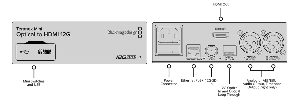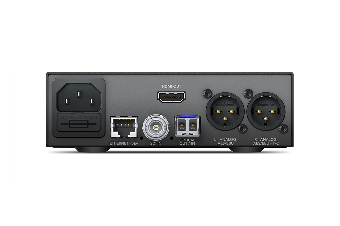 Now you can convert from SDI and SMPTE optical fiber to HDMI! Simply insert the SMPTE optical fiber module of your choice to get video and embedded audio over massive distances using 3G, 6G, or 12G-SDI optical fiber! You get professional 12G-SDI and XLR connections, a down converter for viewing Ultra HD sources on HD displays plus ethernet for remote admin control. The optical fiber SFP module is sold separately so you can purchase the SMPTE compatible 3G-SDI, 6G-SDI or 12G-SDI SFP module to suit your workflow. You can even add an optional Smart Panel to add LCD monitoring and push button controls to your Teranex Mini!