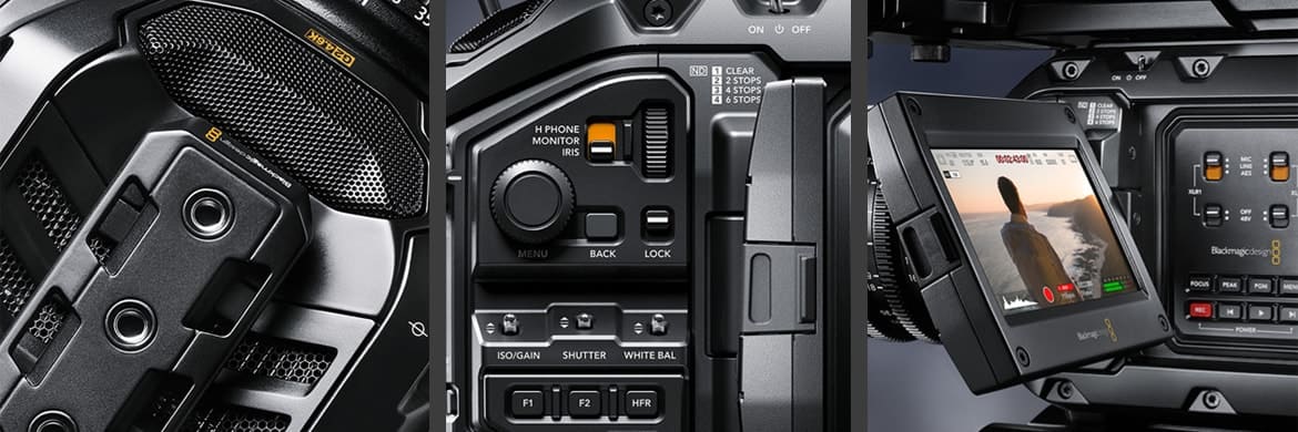 URSA Mini Pro 4.6K G2, is a professional digital film camera that combines incredible 4.6K image quality with the features and controls of a traditional broadcast camera! The second generation URSA Mini Pro features fully redesigned electronics and a new Super 35mm 4.6K HDR image sensor that combine to give you much higher frame rate shooting. You also get built in ND filters, an interchangeable lens mount, Blackmagic RAW support, and both dual CFast and SD UHS‑II card recorders for capturing images at up to 300 frames per second! There’s even a USB‑C expansion port that lets you record directly to flash drives or SSD disks for even longer recording times! URSA Mini Pro 4.6K G2 features a massive number of controls intuitively positioned on the side of the camera so you can adjust most settings by feel, without ever having to take your eyes off the action. URSA Mini Pro is lightweight and comfortable enough to use all day, has controls that are extremely fast to use, and image quality that’s far superior to broadcast cameras costing ten times more!
