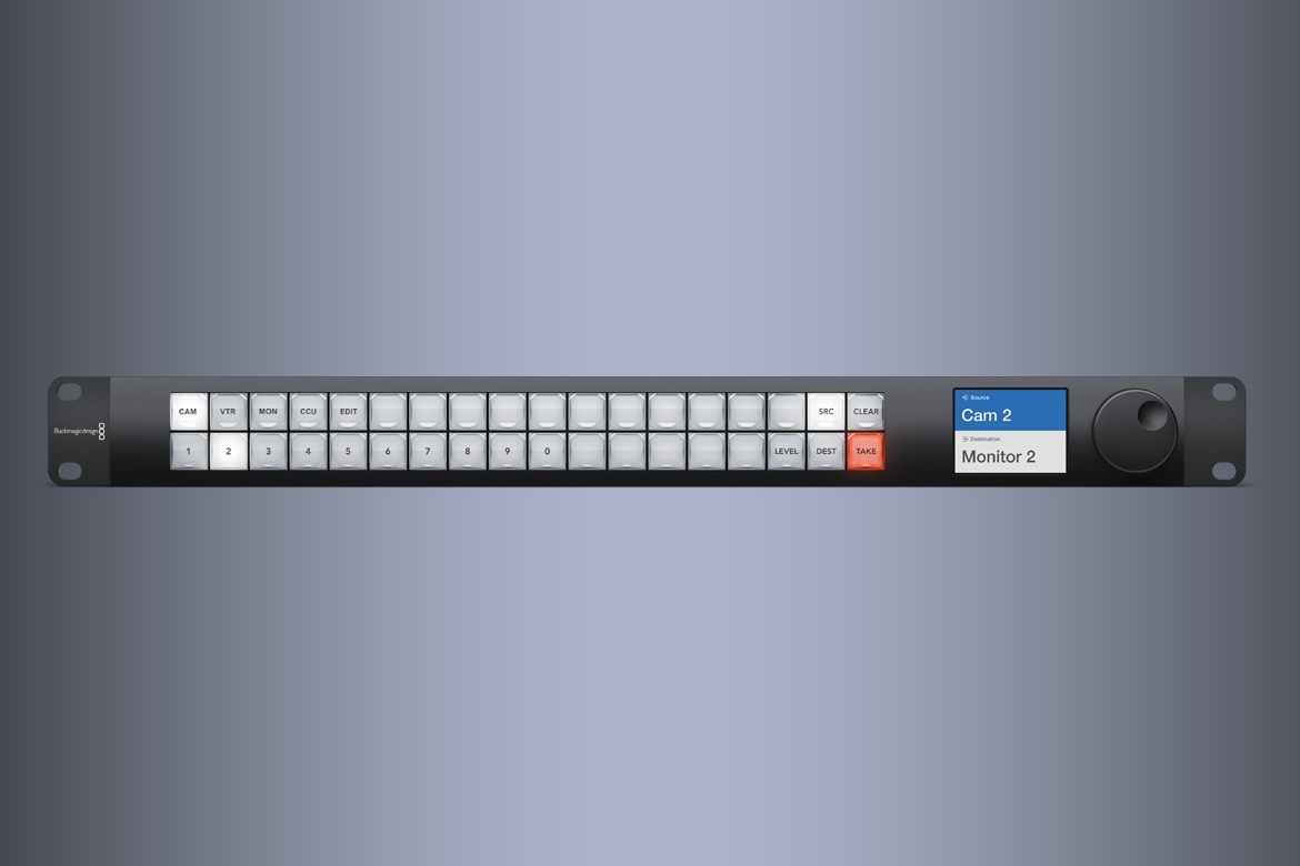 When you need to access your whole router without sacrificing speed, then Videohub Master Control Pro lets you scroll your router sources and destinations with the easy to use spin knob control or via direct button entry. You can even see all routes on the beautiful LCD! Powers via DC or the Ethernet connection!