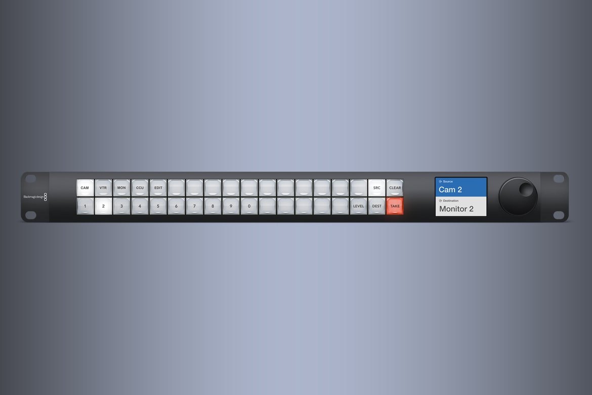When you need to access your whole router without sacrificing speed, then Videohub Master Control Pro lets you scroll your router sources and destinations with the easy to use spin knob control or via direct button entry. You can even see all routes on the beautiful LCD! Powers via DC or the Ethernet connection!