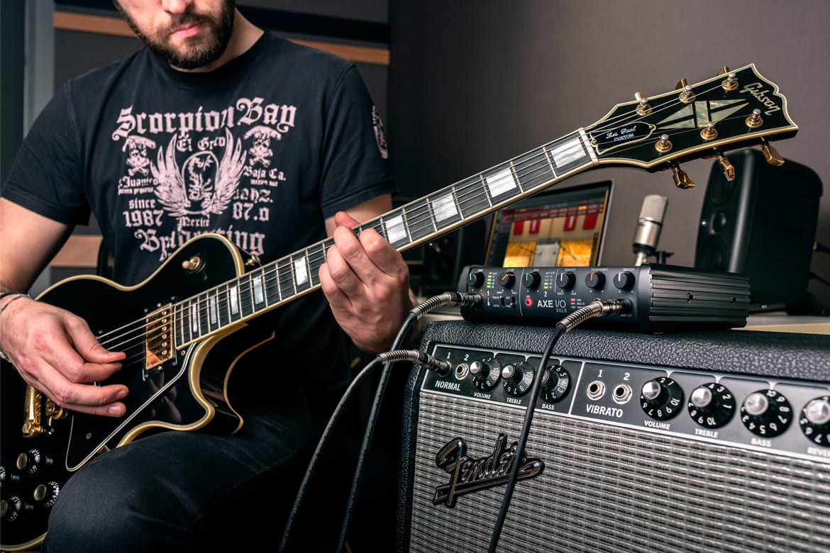 AXE I/O Solo offers a dedicated Amp Out, a with ground-isolated design and zero-latency routing, letting you ditch expensive and confusing reamping setups.It’s simple: connect the Amp Out to your amp, then mic it up using AXE I/O Solo’s microphone preamp. Now you can capture a clean copy of your signal while recording and feed it back to your amp afterwards to experiment with different amp, stompbox and microphone settings without re-recording countless takes.