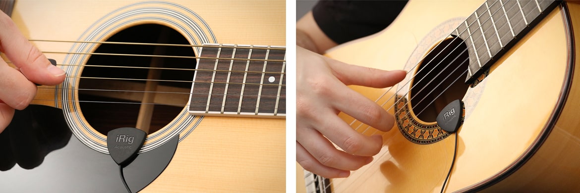 iRig Acoustic offers you the convenience of being easy to install (or remove) on any guitar — no modification of any instrument is required to use iRig Acoustic. It simply securely clips on to the rim of the soundhole of an acoustic instrument and you’re ready to play. Because you can easily install and remove it, you can use iRig Acoustic on all of your acoustics, even during the same set!True mobility