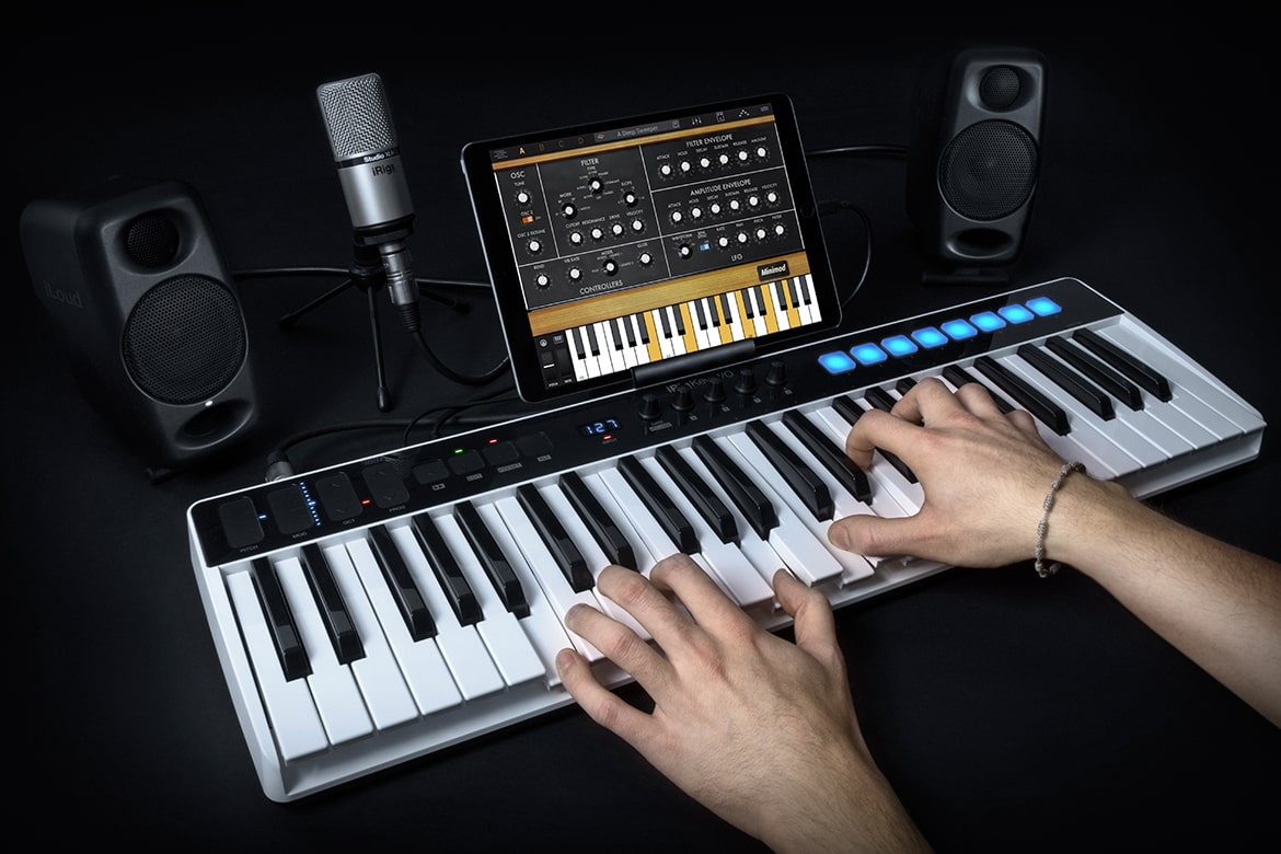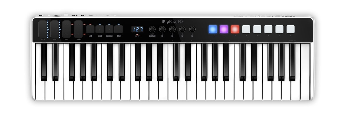 The iRig Keys I/O is an Apple MFi keyboard controller (Made for iPod, iPhone, iPad,) and is guaranteed to work out of the box with all iOS devices including the latest generation of iPhone 10. The included Lightning cable allows for straight plug-and-play with Apple iOS devices. The USB cable connects Mac and Windows computers. The controller can be powered via USB or by the included AA batteries. Additionally, an optional power supply adapter is available that not only powers the iRig Keys I/O, but also keeps your device charged simultaneously. Optional accessories are available including a padded carry bag and the iRig Keys I/O Mic with a sturdy gooseneck.