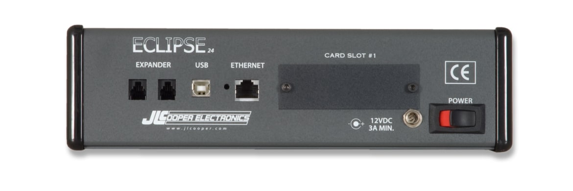 The JLCooper Eclipse 24 Midnight Tactile Command Palette features 24 remotely-relegendable 64x32 LCD keyswitches (hi-res, RGB) that can display text up to 40 characters, and graphics using the integrated command driven serial interfaces. The mid-sized desktop controller also comes with 17 additional function and navigation switches and 10 bank buttons.