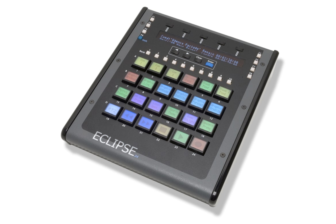 The Eclipse 24 Midnight Tactile Command Palette offers instant playback and control, and is suitable for applications such as broadcast automation and post production. It also features an interface card slot.