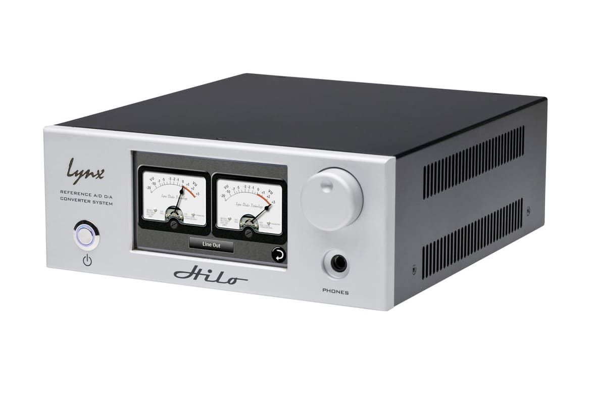 The silver Hilo Reference A/D D/A Converter System from Lynx Studio Technology offers two channels of mastering-quality 24-bit/192 kHz analog to digital conversion, up to six channels of digital to analog conversion, a secondary monitor output, and a world-class independent headphone amplifier, in a compact, half-rack size. Lightweight (at 6.75 lb) and portable, it provides audio professionals and audiophiles alike with pristine, open, and transparent audio quality, whether working in the studio, in the field, or as part of a home theater setup.