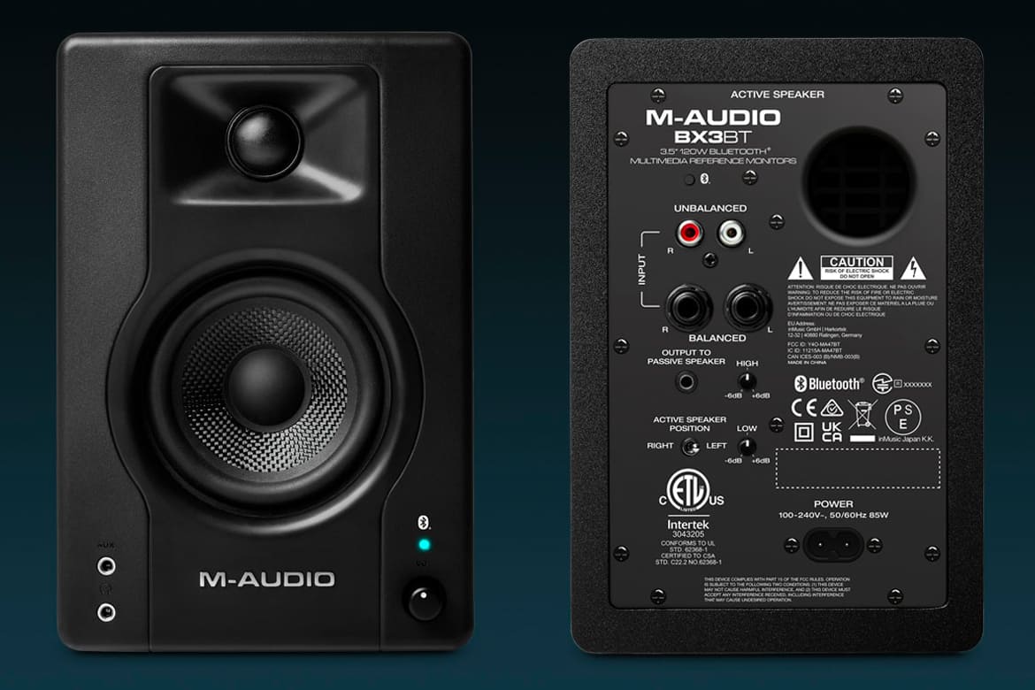 M-Audio BX3 BT Bluetooth®-enabled multimedia reference monitors deliver professional sound in an attractive compact design. Engineered for a pristine listening experience with the flexibility to stream music and audio from any Bluetooth® device, BX3 BT monitors have the latest Bluetooth® technology combined with rich studio-quality sound.