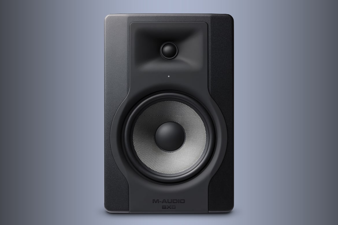 The BX8 D3 from M-Audio is a 2-way, 150W powered studio monitor designed to offer a wide frequency response and easy configuration for mixers, DJs, producers, and recordists in small to medium control rooms, personal studios, and mobile rigs. The monitor produces a frequency response of 37 Hz to 22 kHz, thanks to two Class A/B amplifiers feeding an 8” Kevlar woofer and a 1.25” silk dome tweeter.