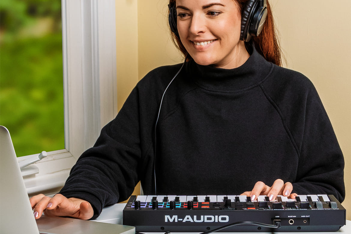 It’s simple to use the Oxygen Pro Mini controller with any DAW with the Oxygen Pro Mini's automatically mapped controls such as Transport, Faders, Channel controls (Record Arm, Solo, Mute, and Select), Pan controls and more. Whether you use Ableton, Pro Tools, MPC Beats, Cubase, Logic, Studio One or any other major DAW, just select your DAW in the Oxygen Pro Mini and select the correct configuration in your DAW, and the Oxygen Pro Mini’s controls will be completely integrated into your DAW! It also instantly maps to all the virtual instruments included with the Oxygen Pro Mini (Velvet, Mini Grand, Vacuum, Boom, DB33, Xpand!2). These world-class Air Music Tech plugins can be fully controlled by the Oxygen Pro Mini and used in real-time as you create and mix your music.