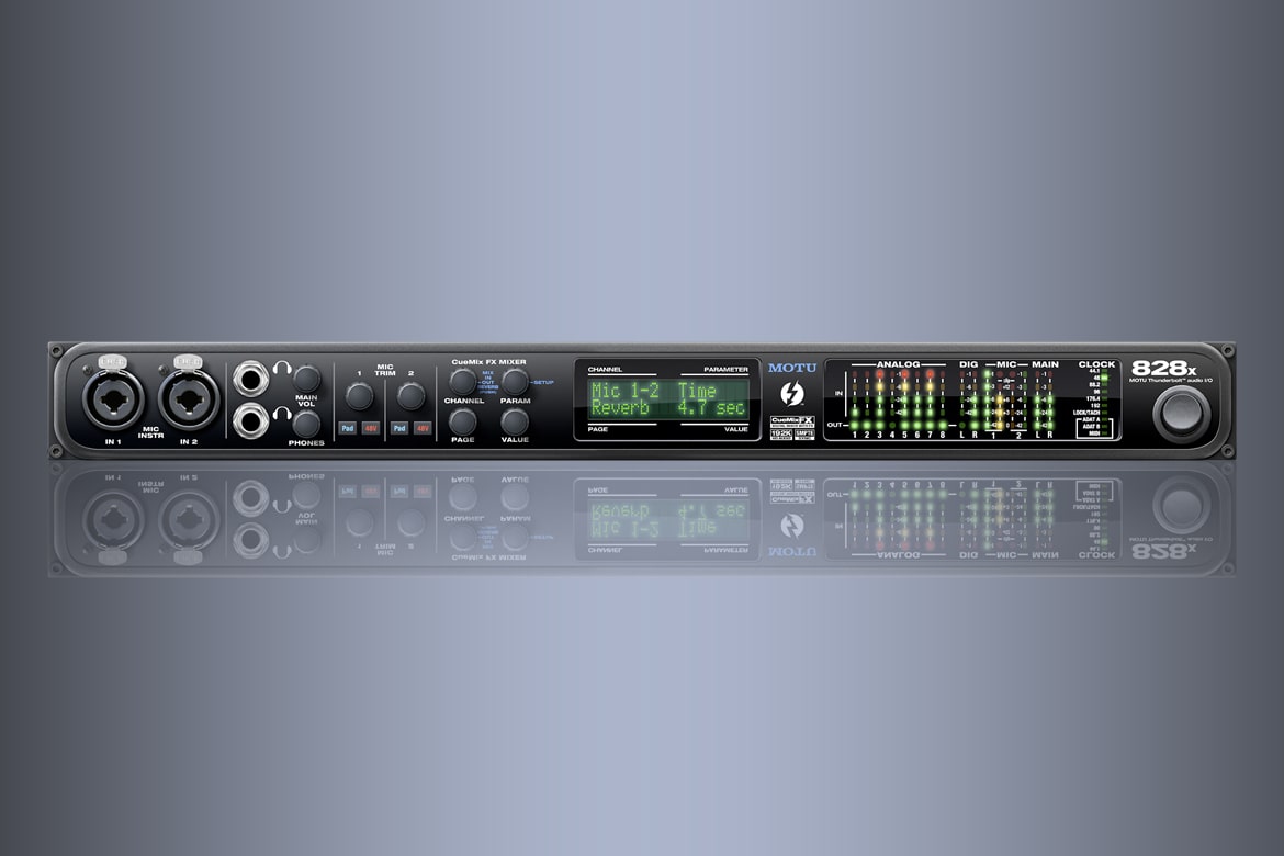 The MOTU 828x Professional 28x30 Audio Interface with Thunderbolt Technology is a 1RU 19" rack mountable digital audio interface that can connect to your 32- or 64-bit Mac or PC computer over Thunderbolt 1, Thunderbolt 2, or USB 2.0 (compatible with USB 3.0 ports). Up to six Thunderbolt devices such as displays and hard drives can be daisy chained together with the audio interface at the end of the chain.
