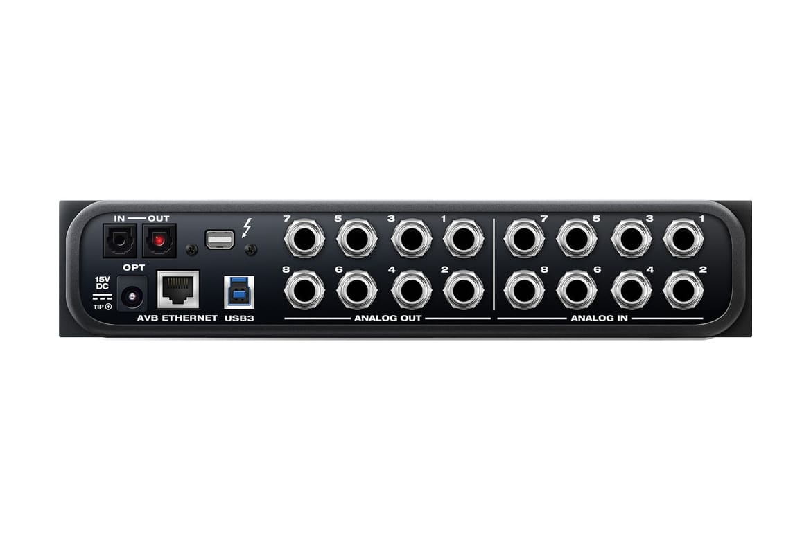 Computer I/O | 1 x Thunderbolt 1 (Mac and Win) Thunderbolt 2 & 3 compatible 1 x USB 3.0 (Mac and Win) USB 2.0 and iOS compatible (class compliant) 1 x AVB/TSN Ethernet (Mac only) Requires OS X 10.11 or later |