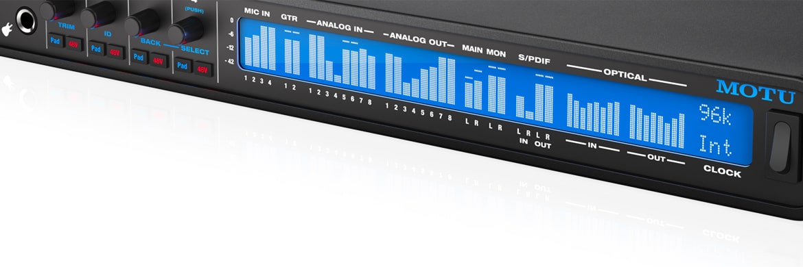 Comprehensive MeteringFeatures large backlit 324 x 24 LCD that allows you to view all signal activity at a glance with detailed metering of analog and digital I/O, as well as access to hardware settings from font panel GUI.