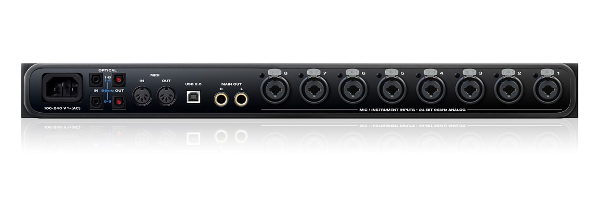- Eight XLR/TRS "combo jack" mic inputs — connect up to eight mics, or mix and match mics with guitars, synths, drum machines and other analog input signals.