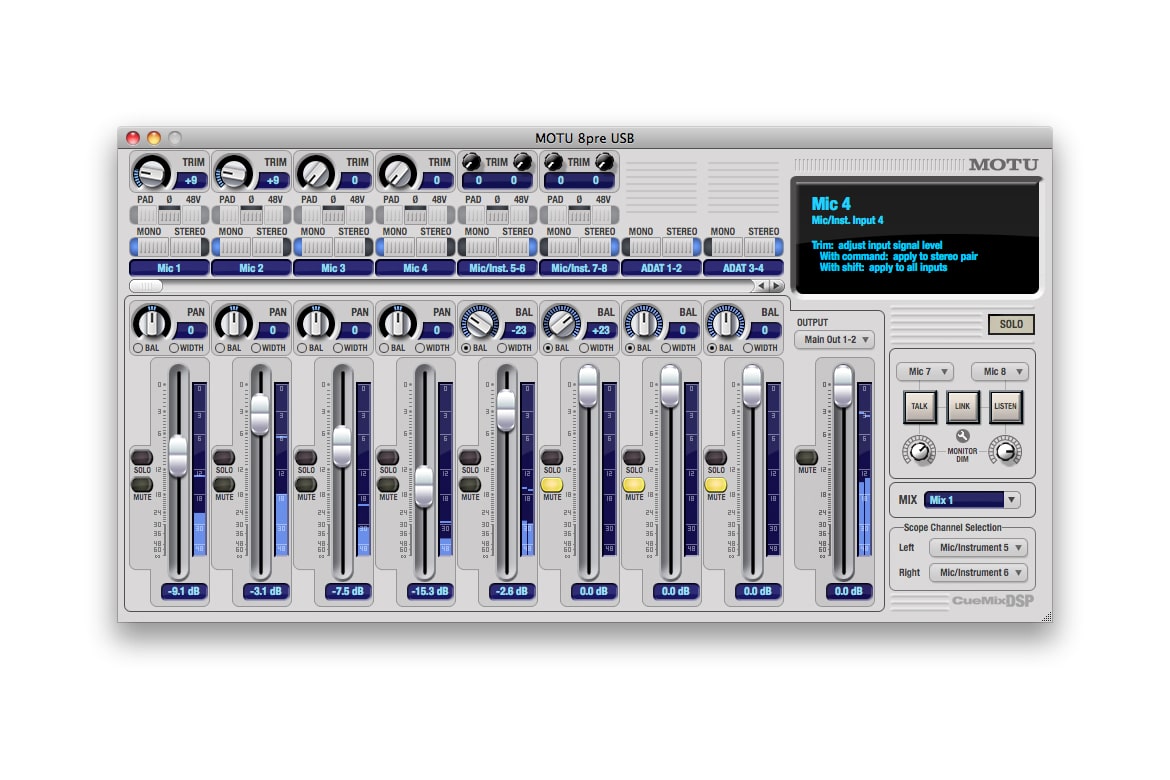 - Expandable — add additional MOTU 8pre, UltraLite, 828, 828, 896, or Traveler interfaces for additional I/O. Or connect the 8pre optically to any audio interface or mixer that supports ADAT optical I/O.