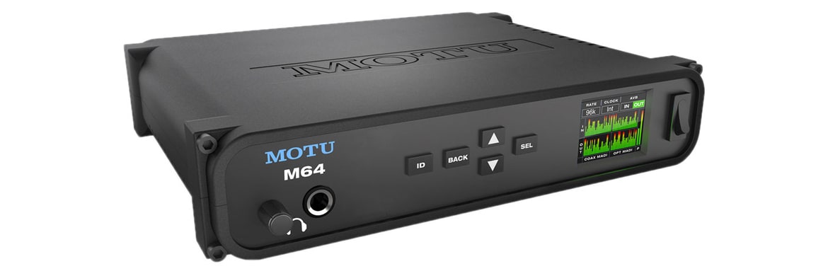 The M64 is a flexible MADI interface, router, repeater, splitter, converter and mixer with AVB/TSN networking. It is ideal for routing MADI digital audio streams in live performance systems, network installations or recording studios of any size.