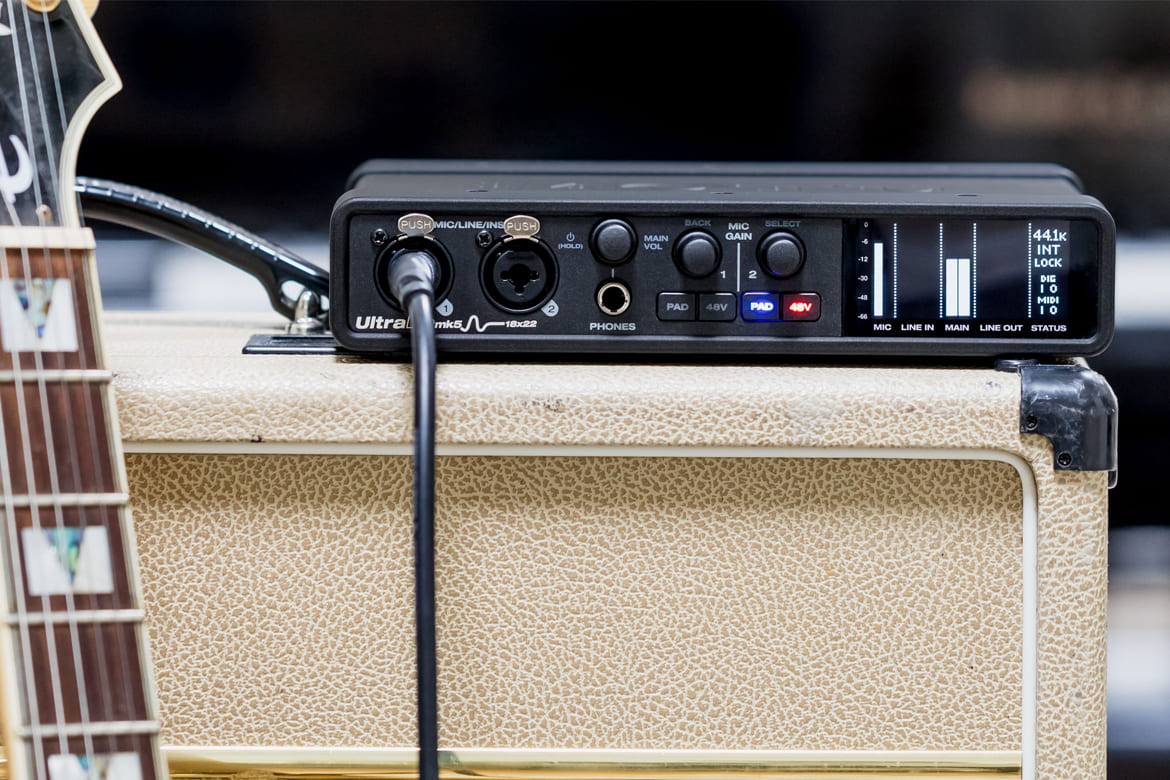 Connect all of your audio gear, including speakers, headphones, mics, guitars, synths, keyboards, drum machines, effects processors and even MIDI devices.