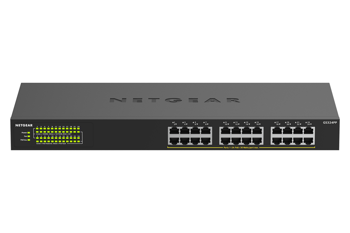 | Model Description | Introducing the NETGEAR GS324PP 24-port Gigabit Ethernet Unmanaged High-power PoE+ Switch with 380W PoE budget. Desktop and rackmount for flexible placement. |