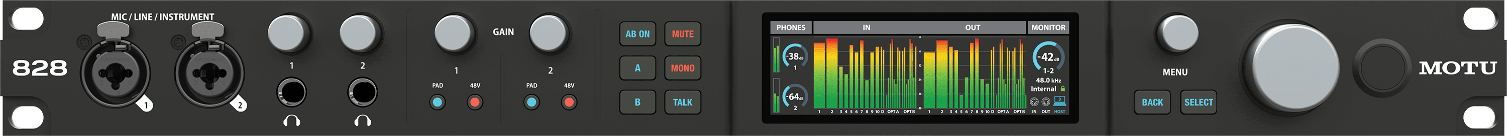 MOTU is now shipping a complete redesign of its popular 828 rack-mounted (1U) audio interface for macOS, Windows and iOS. With superb analog performance driven by renowned ESS Sabre32 Ultra™ DAC technology, the 28x32 828 connects to a Mac, PC or iPad via 5 Gbps USB3 with low-latency, high-performance drivers to deliver 60 total channels of I/O and 24-channel mixing with on-board effects processing, including reverb, 4-band EQ and compression.