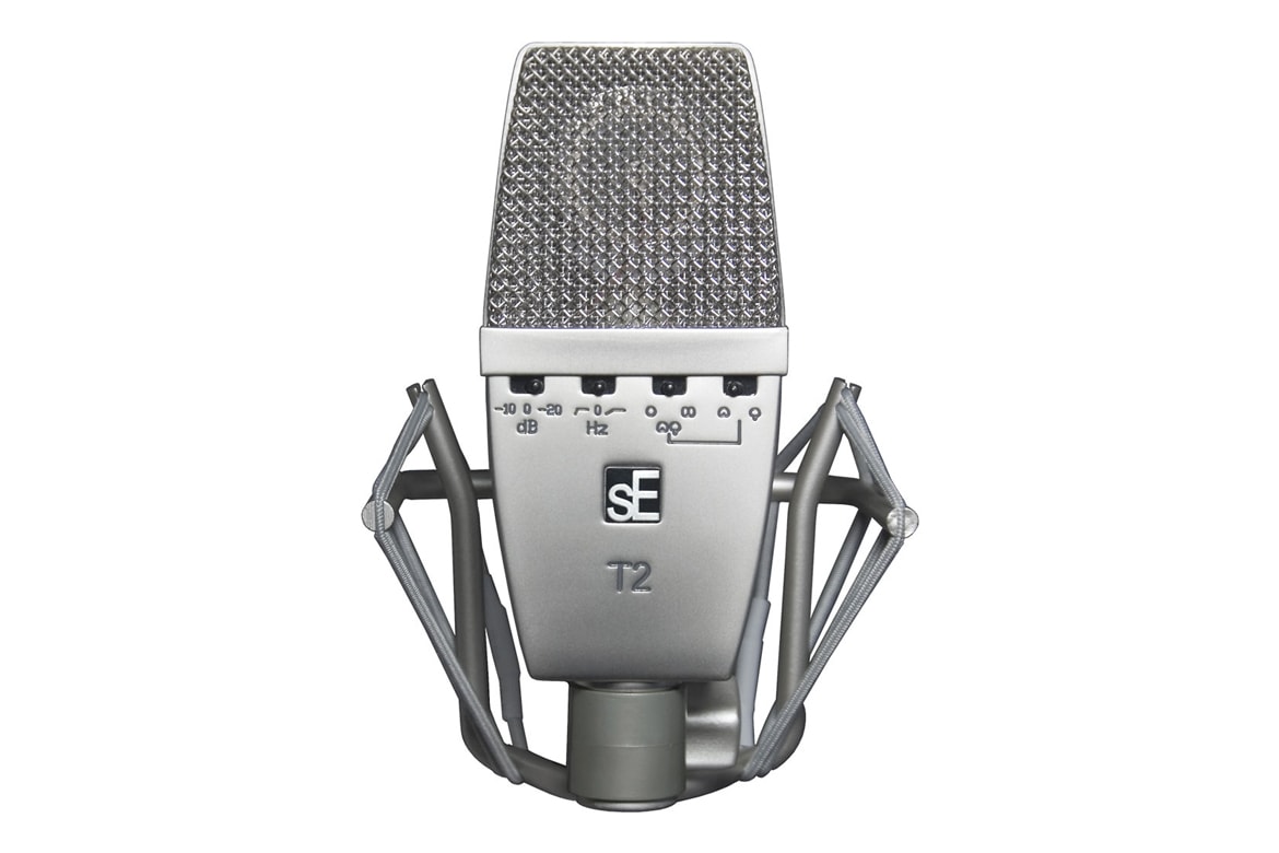The T2 Large Diaphragm Condenser Microphone from sE Electronics is a versatile studio condenser microphone, well suited for capturing vocals, speech, and instruments in project or professional recording, and broadcast applications. The T2 features user-selectable omnidirectional, cardioid, and supercardioid polar patterns for maximum flexibility and control over pickup.