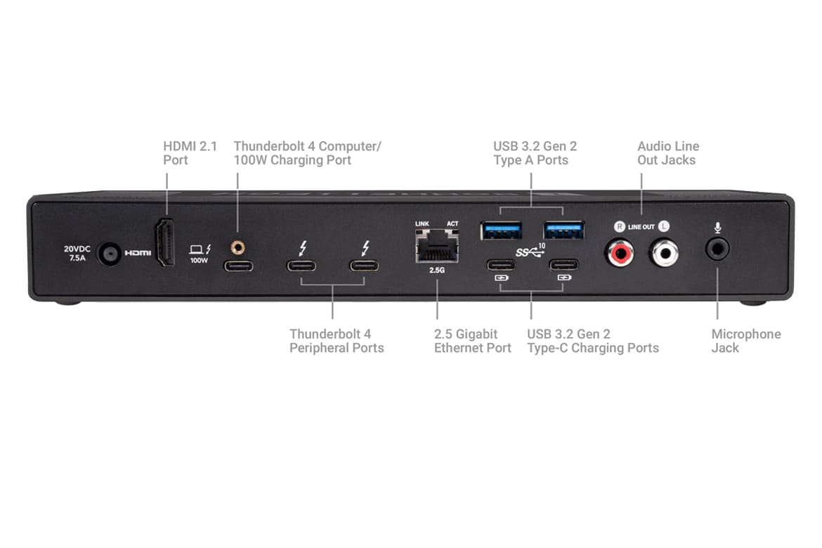 Universal Thunderbolt 4 Dock with Three Thunderbolt 4 Ports, M.2 SSD Slot, HDMI 2.1 Port, 2.5Gb Ethernet Port, Eight 10Gbps USB Ports, and More!