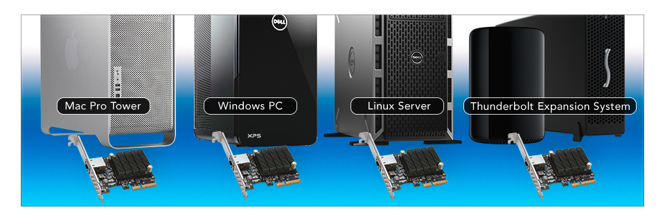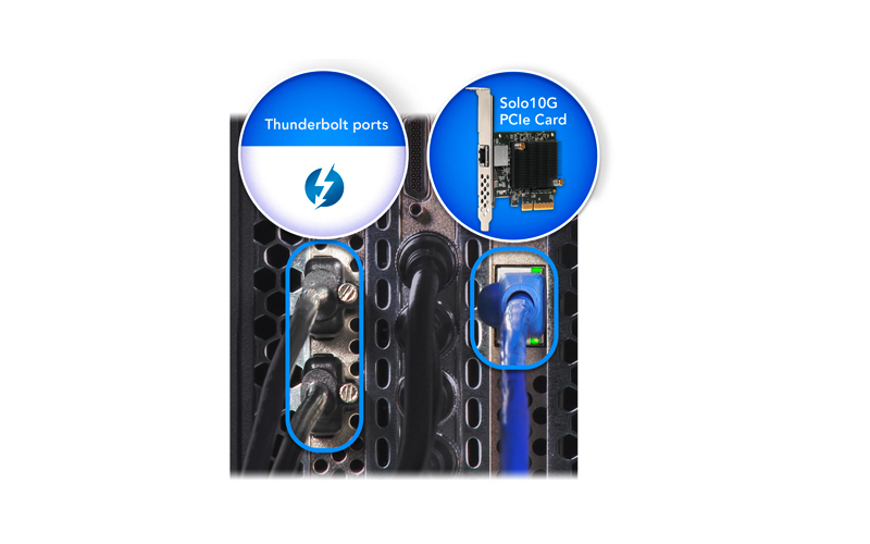 Have a multi-slot Thunderbolt 2 or Thunderbolt 3 to PCIe card expansion chassis with an open slot? Installing a Solo10G PCIe Card is an excellent way to inexpensively add 10GbE connectivity to your computer.