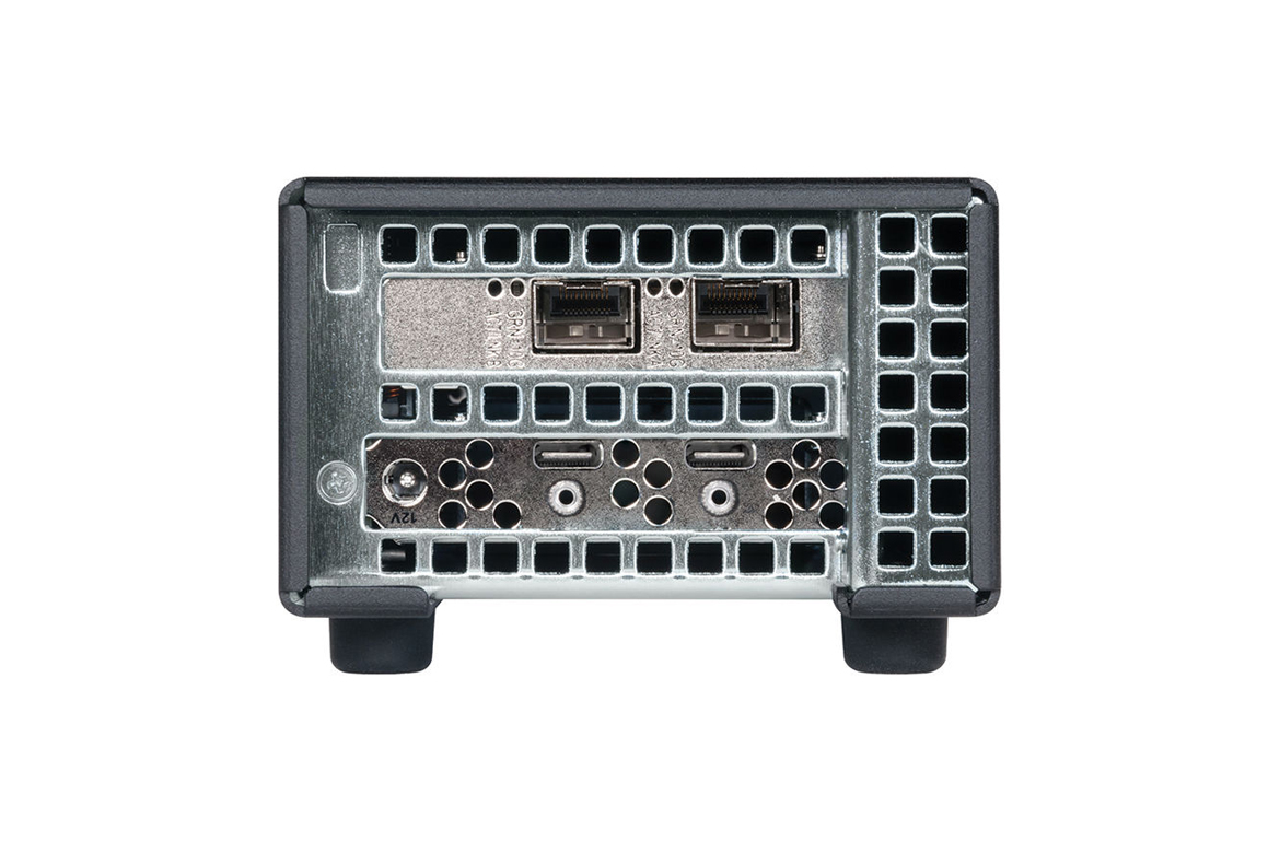 Small enough to easily fit in most workspaces, the Twin10G SFP+ Thunderbolt 3 adapter is still large enough to support proper airflow inside the case—its design enables the adapter’s temperature-controlled, variable-speed fan to keep the adapter running cool and whisper-quiet at all times, making it suitable for use in noise-sensitive environments. Constructed of rugged and lightweight aluminum, the adapter’s outer shell securely protects the inner circuitry.