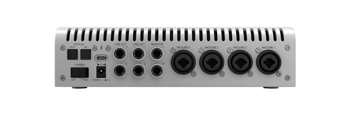 - Four UnisonTM mic preamps, two Hi-Z instrument inputs, optical Toslink I/O (ADAT or S/PDIF)