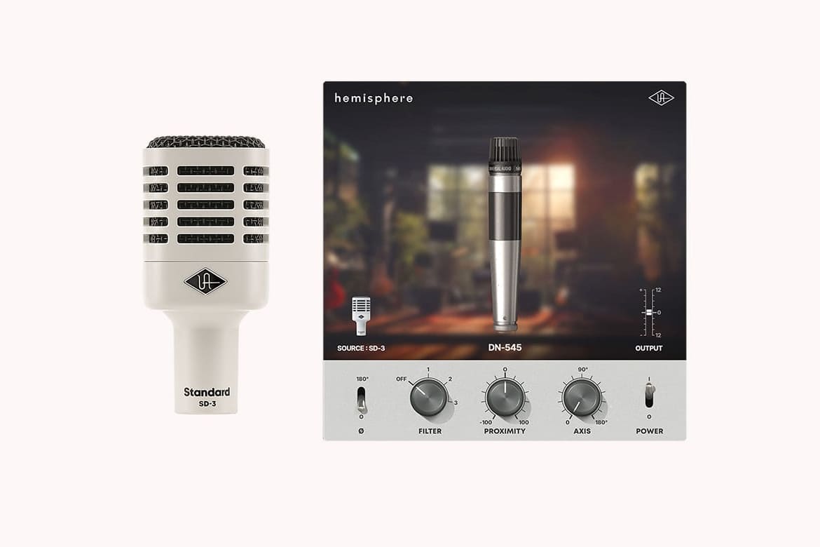 SD-3 and the included Hemisphere Mic Collection software work with or without UA hardware, and go way beyond subtle EQ curves to give you precise control over filter, proximity, and axis — an industry first. Just set up SD-3 and use the plug-in to find that “sweet spot” for a guitar cab, or tame harsh frequencies on a snare or tom drum.