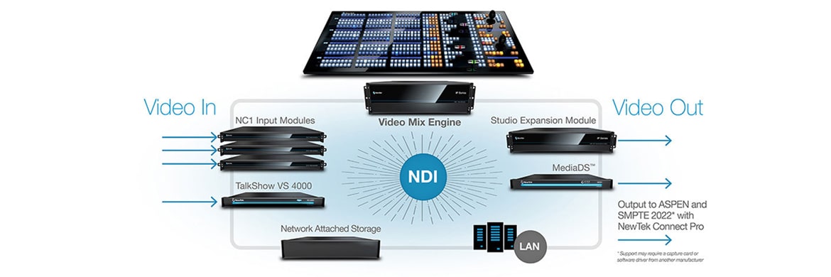 - Intuitive layout mapped to the NewTek IP series video mix engine user interface