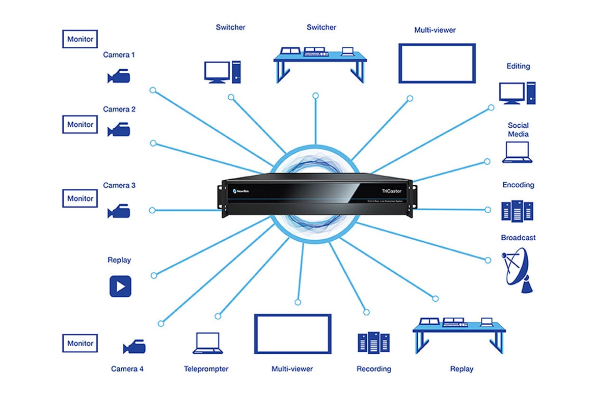 TriCaster® TC410 Plus is an integrated video production system designed to create multi-platform productions live and on-demand. Your shows will be polished, engaging to viewers through social and second-screen experiences, deliver revenue opportunities, and extend your brand. TriCaster 410 Plus is scaled for smaller racks and mobile units and gives you an end-to-end IP workflow from acquisition to delivery.